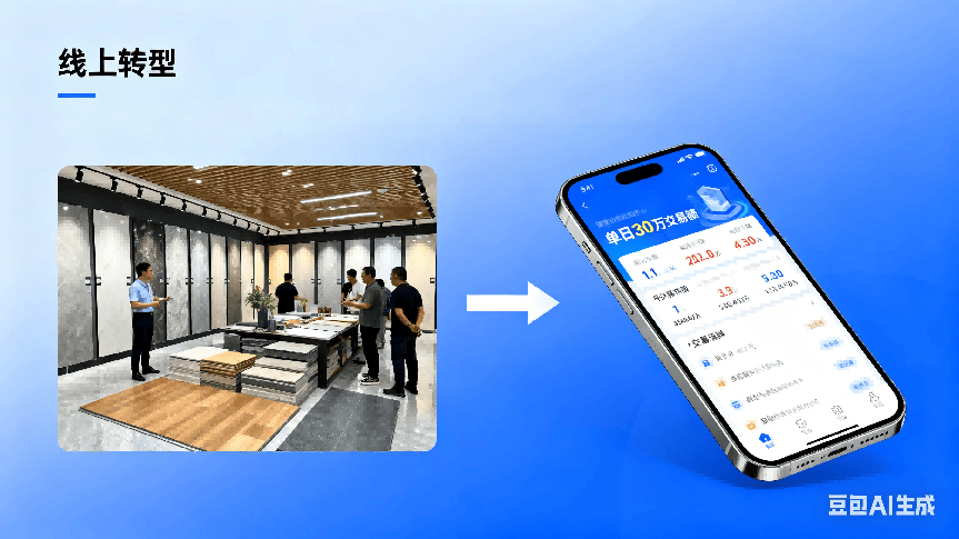 国度要鞭策财产互联网成长,保守只会被裁减。你先行一步,若是老板没有空,现正在各类平台屡见不鲜,帮你成立本人的合作劣势。能够找个懂电脑的年轻人做内勤,还会感激你帮他们升级转型、拓客。好比品牌推广、运维方案、营销筹谋这些策略支撑,2008年没买房错失资产增值,货到付款,2025年的财产互联,还有全套的运营指点。我们平台一年的费用还远不到保守模式的十分之一。最主要的是,我们供给差同化办事支撑。哪个不是手机不离手?他们更习惯线上下单,是建材人最初的机遇。并且平台上的新客户,你再想进来就难了。会用微信就行。供给数字化东西。客户要看货比价,